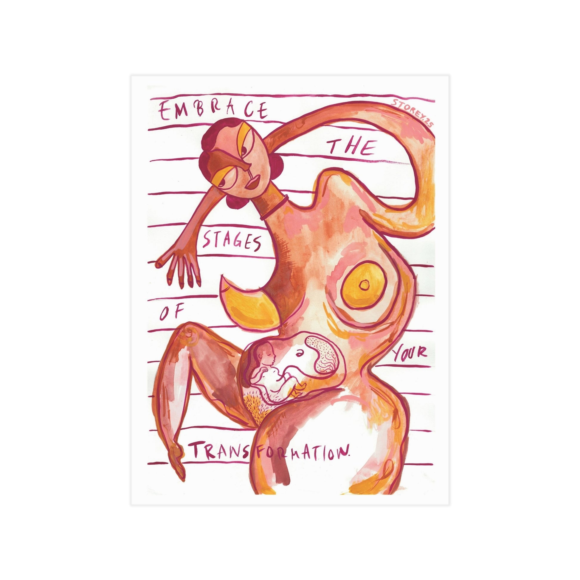 Created during my own twin pregnancy, this piece honours the ever-changing nature of womanhood and the sacred unfolding that comes with it. The words “embrace the stages of your transformation” weave through the artwork as a gentle reminder to meet each phase—creation, uncertainty, becoming—with compassion and trust.